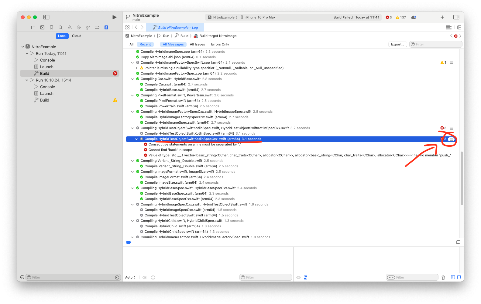 If your app fails to build after installing Nitro or a library powered by Nitro, make sure to post full build logs: